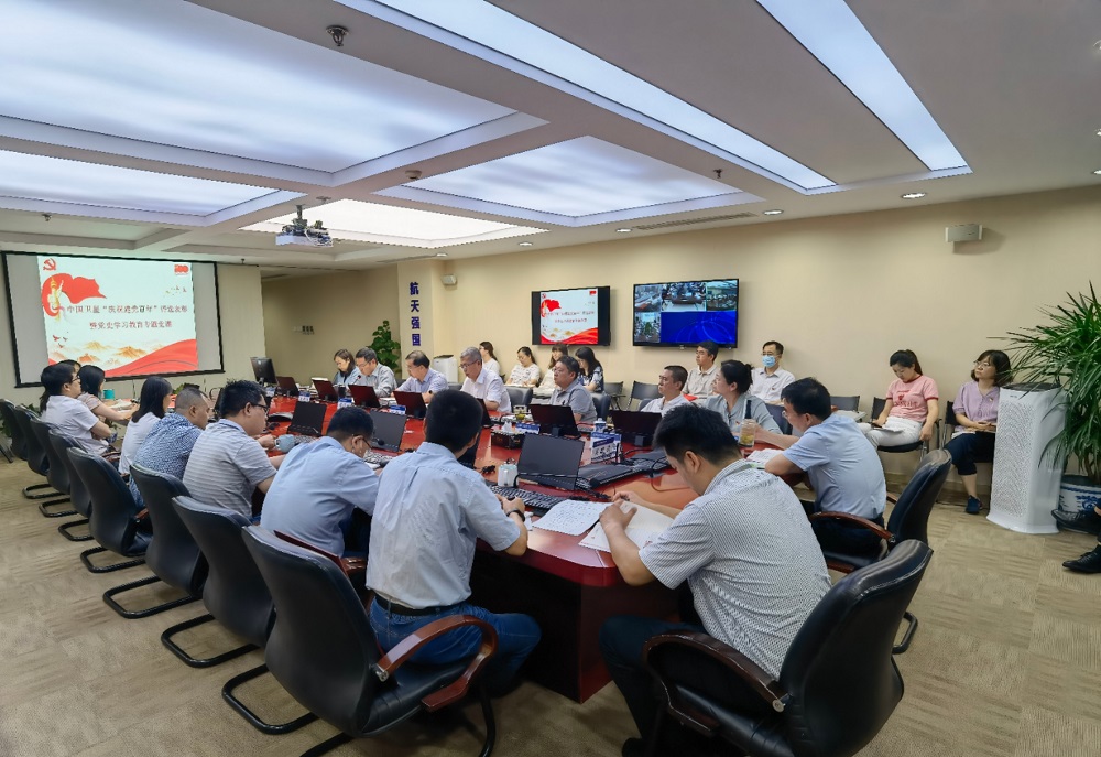 五院黨史學習教育第三指導組蒞臨指導。公司黨委委員、總部中層及以上干部、總部黨員、子公司獲獎代表等共 40人現場參會,子公司黨總支委員及黨員干部150人視頻參會。